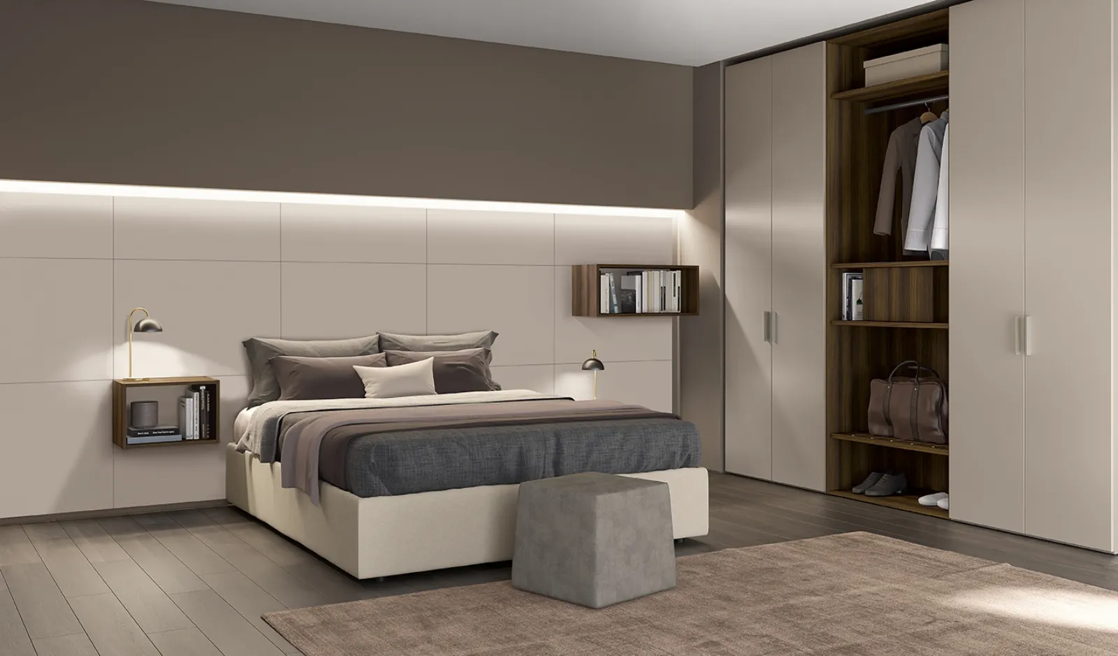 Gli Armadi componibili con ante battenti sono componenti immancabili nella zona notte, per renderla arredata con gusto, funzionale e completa di tutto. Per arredare ottimamente una stanza pratica e sofisticata, opta per le più esclusive soluzioni dei migliori brand, letti, armadi e comodini di grande design. Contattaci e scopri di più sulla nostra collezione di Arredamento Casa: avrai la possibilità di ultimare la camera da letto usufruendo di una diversificata gamma di mobili contenitori moderni, come l'armadio in melaminico nella fotografia.