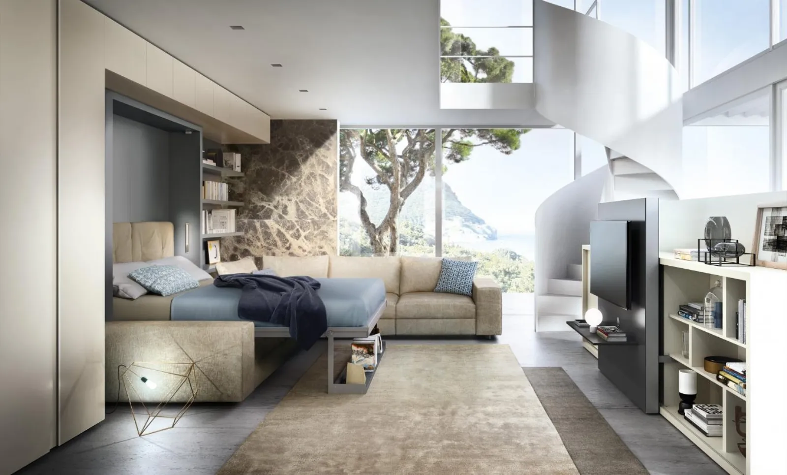 Nel nostro showroom potrai visionare in prima persona le svariate offerte in laccato opaco di Clei, tra cui trovi anche modelli su misura trasformabili delle migliori aziende. In una camera da letto di piccola metratura trova posto il Sistema trasformabile Ambiente 03 di Clei, progettato per garantire il riposo migliore e il corretto sostegno ad ognuno. I prodotti fatti in laccato opaco dal marchio offrono alla tua camera da letto un tocco di stile e charme, per uno spazio votato a un grande comfort. La camera da letto è lo spazio più intimo di casa, deputato al sonno quotidiano, perciò i mobili devono sempre ricreare un'ambientazione distensiva. Con i Letti a scomparsa salvaspazio in laccato opaco di Clei, tra cui questo modello di tendenza, avrai nella tua camera da letto un arredo bello e accogliente. Il giusto tipo di letto deve seguire il tuo gusto personale e una peculiare coerenza stilistica, ciò che importa è che si adatti alle dimensioni e funzioni del locale.