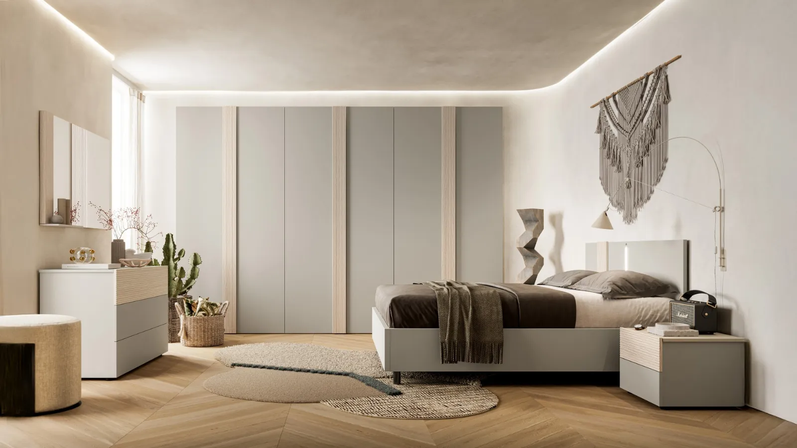 Per completare ottimamente l'arredo della tua camera da letto è di primaria importanza valutare gli abbinamenti del letto con armadi e comodini, accessori e quant'altro: se vuoi mobili moderni, il modello nell'immagine fa al caso tuo. Contattaci e scopri di più sulla nostra linea di Letti matrimoniali con testiera: ottimizza la tua camera da letto con le nostre soluzioni. Questa è una proposta di grande appeal, che racchiude in sé tutta l'eccellenza garantita dalla pluriennale professionalità del brand nel campo.