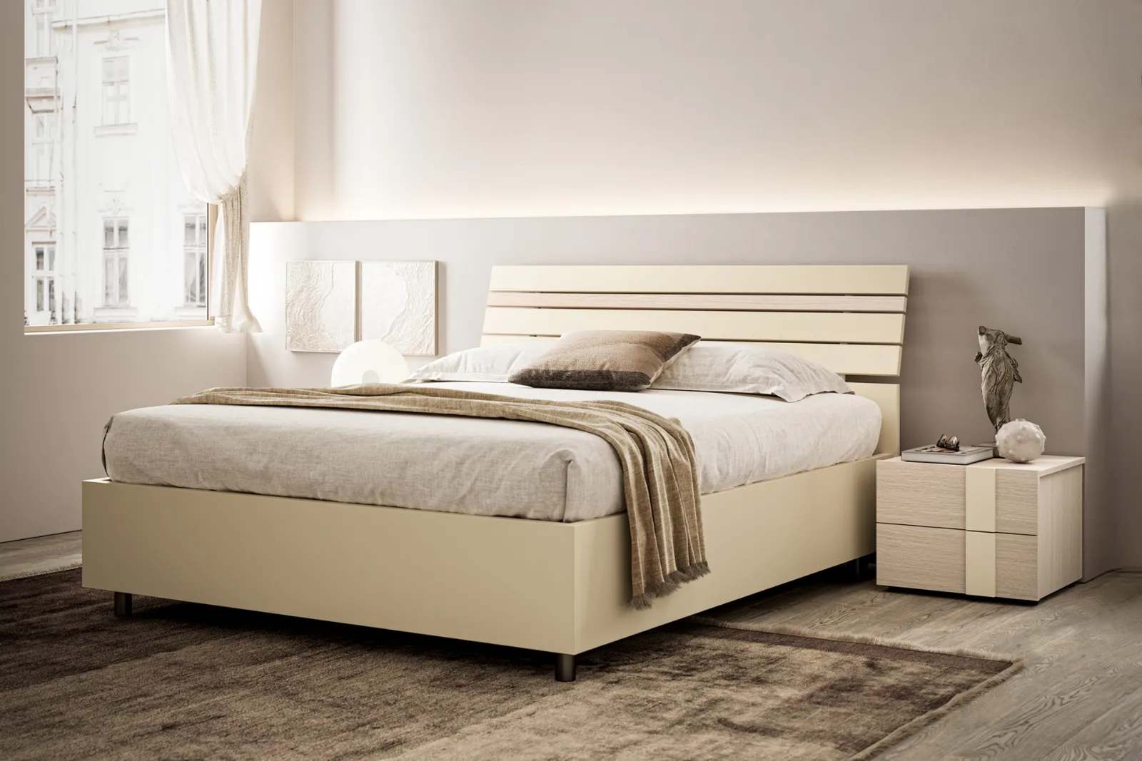 Se desideri assicurarti il comfort più totale nei tuoi momenti di riposo, scegli i Letti matrimoniali moderni in melaminico come il modello mostrato in foto. Nel nostro sito troverai le migliori soluzioni dei migliori brand specializzati nell'arredo per la zona notte, con un’ampia possibilità di personalizzazione in quanto a colori e abbinamenti, elementi accessori e molto altro. La camera è l'ambiente di casa che più interpreta la personalità di chi la frequenta, interno in assoluto dedicato al relax, alla distensione e alla privacy. Scopri un ricco catalogo di letti con testiera dei migliori brand di Arredamento Casa disponibili nel nostro showroom e valorizza la tua camera.