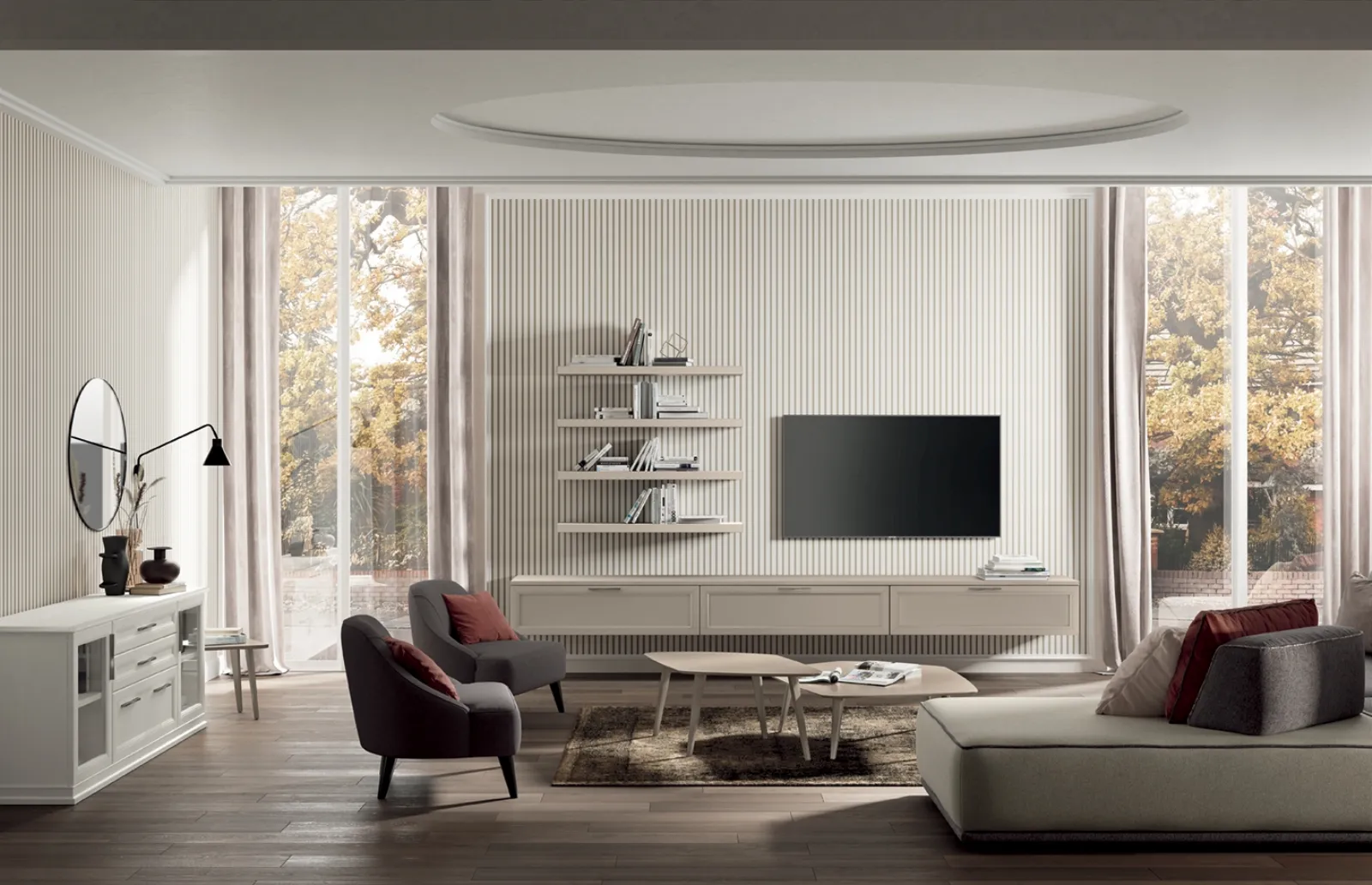 Le Pareti Attrezzate classiche danno la possibilità di ricreare differenti ambientazioni nel living, liberando spazio e usufruendo al meglio di ogni angolo. Scopri la nostra linea di arredi per il living del brand Colombini Casa e potrai arredare la tua casa con uno stile unico e le doti contenitive di cui hai necessità. La Parete Attrezzata Arcadia AS009 di Colombini Casa diventa presenza caratterizzante in stanze di ogni tipo grazie ai suoi elementi modulari e alla possibilità di scegliere texture, materiali, tonalità, conformazioni e tanto altro.