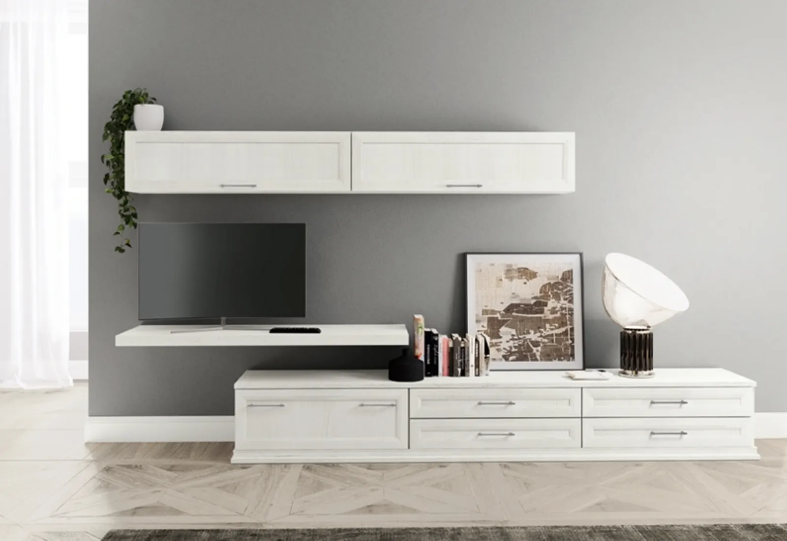 I mobili soggiorno in melaminico dalle linee classiche come il modello nell'immagine sono veramente poliedrici e capaci di ammobiliare il living valorizzando ogni angolo. Colombini Casa propone innovativi modelli di mobili soggiorno, diversi per stile e forme, texture e componenti: scopri in negozio l'Arredamento Casa dei migliori brand. Lasciati ispirare da una ricca gamma di mobili per la zona giorno e troverai la parete attrezzata che fa per te. Dato che il soggiorno deve essere uno spazio agevole e bello a vedersi, sono molto utili alcuni mobili belli e funzionali come le Pareti Attrezzate.