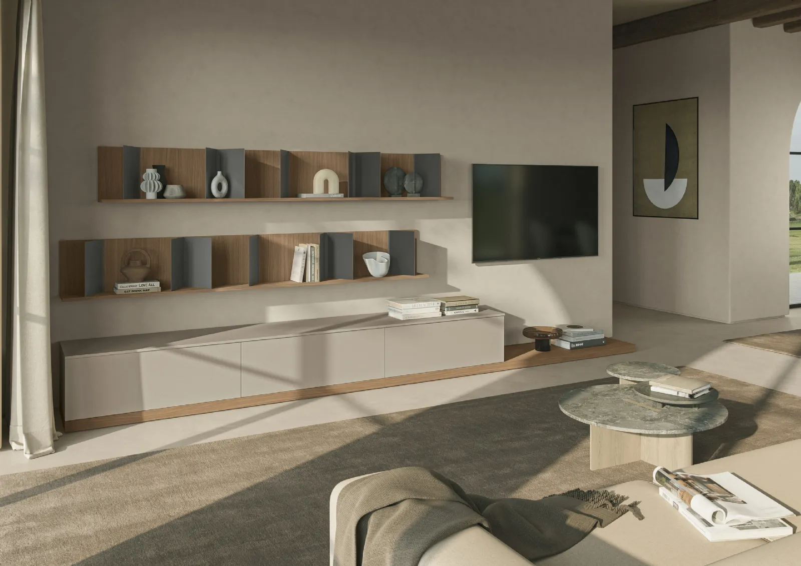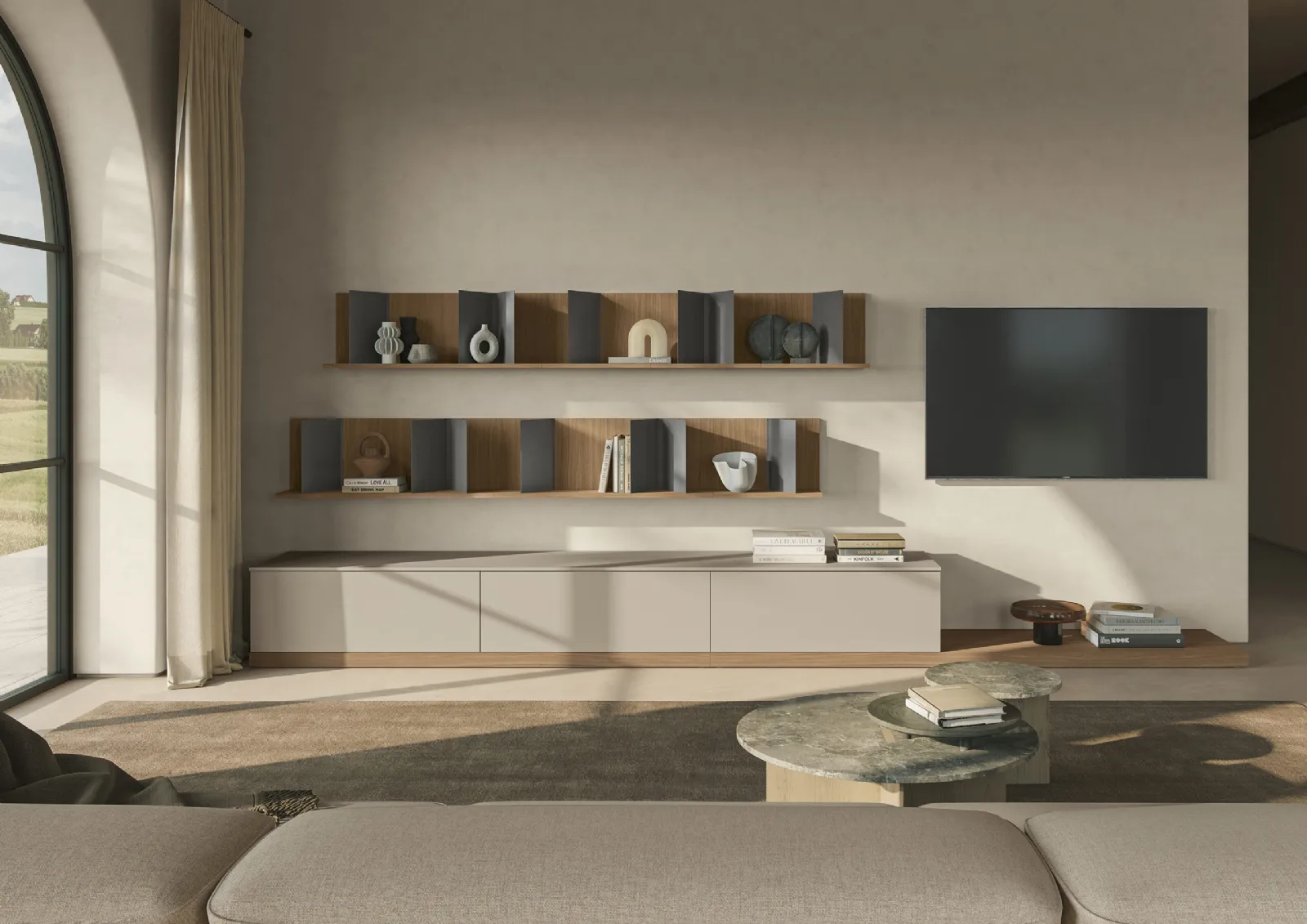 Le Pareti Attrezzate hanno acquisito un posto importante nella zona giorno delle nostre case: sono arredi plurifunzionali e salvaspazio sempre realizzabili su misura. Attraverso un gioco dinamico di accostamenti fra elementi a giorno o vani chiusi, le Pareti Attrezzate moderne arredano il soggiorno ottimizzando ogni spazio. Questa parete attrezzata è una delle soluzioni del brand e ti permetterà di progettare la zona giorno secondo le più personali esigenze abitative.