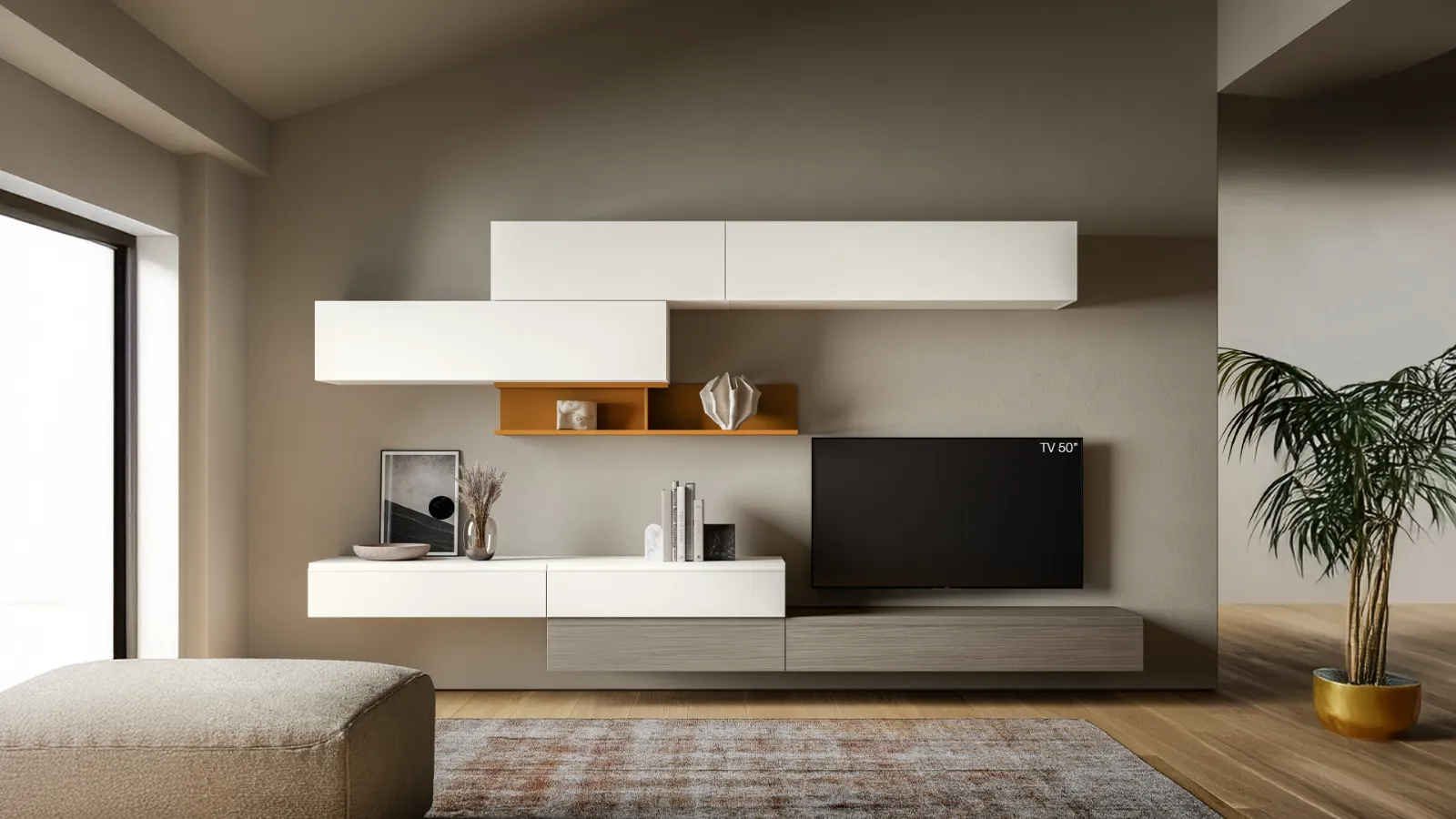 SantaLucia offre a catalogo innovativi modelli di mobili soggiorno, diversi per stile e forme, finiture e accessori: scopri nel nostro punto vendita l'Arredamento Casa dei migliori brand. La Parete Attrezzata Pratico PTG439 di SantaLucia nell'immagine è una tra le più esclusive soluzioni d’arredo sul mercato: l'alta componibilità e le varie opportunità di progettazione la rendono bella e funzionale. Lasciati ispirare da un ricco catalogo di mobili per la zona giorno e troverai la parete attrezzata che fa per te. I mobili soggiorno in melaminico dalle linee moderne come il modello nell'immagine sono davvero polivalenti e capaci di progettare il soggiorno valorizzando ogni angolo.